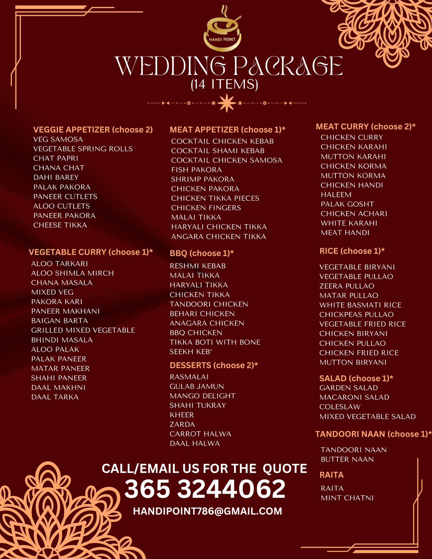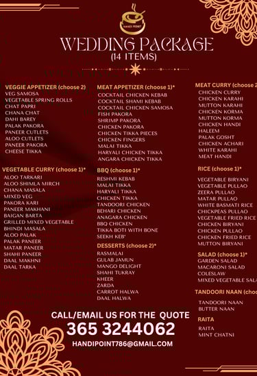 Wedding catering is an essential aspect of any wedding celebration. It involves providing delicious and high-quality food and beverages to the guests attending the wedding reception. At Handi Point Catering services for weddings are carefully planned and executed to ensure that every guest is satisfied with the culinary experience.